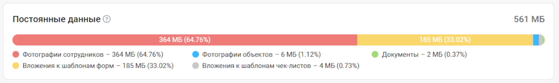 Здесь отображается суммарный объём памяти по всем сотрудникам.