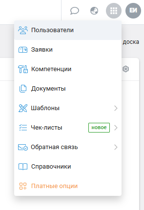 1. Выберите пункт Пользователи в меню пользователя.