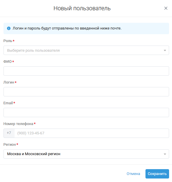 Логин и пароль будут отправлены по введенной ниже почте.