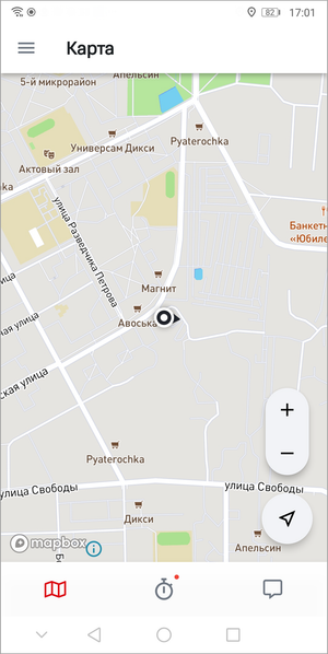 Чтобы изменить масштаб карты, нажмите кнопки «+» для увеличения масштаба или «-» — для уменьшения. Также чтобы увеличить масштаб, коснитесь экрана дважды; для уменьшения масштаба коснитесь экрана двумя пальцами и сдвиньте их. Для перемещения по карте коснитесь экрана и потяните его в нужном направлении.