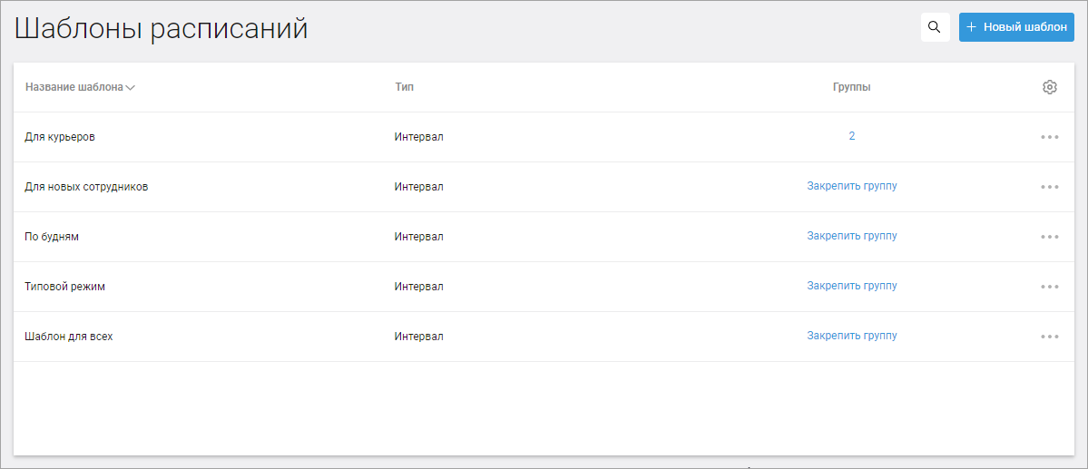 Созданный шаблон можно применить к группам сотрудников, нажав на ссылку Закрепить группу в списке шаблонов.