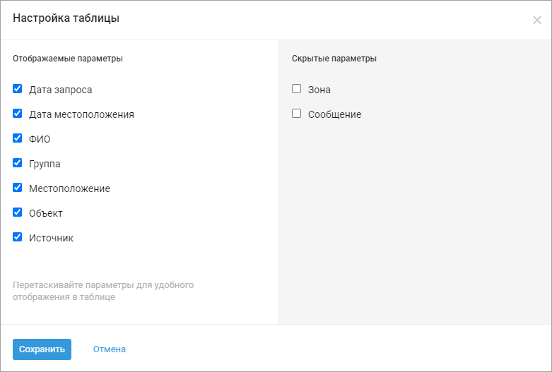 3. Чтобы изменить порядок параметров в таблице, в колонке Отображаемые параметры перетаскивайте параметры вверх или вниз.
