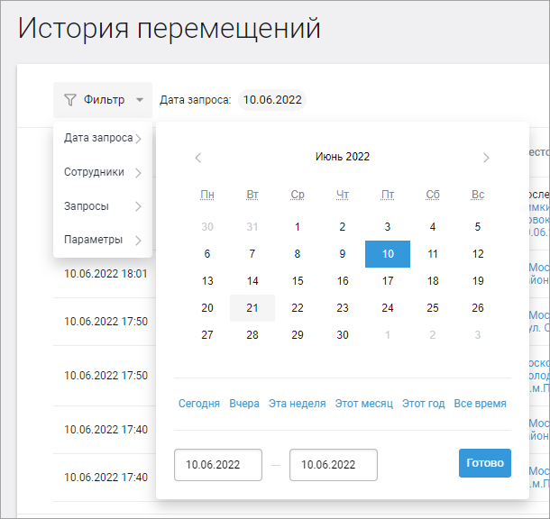 - период, за который нужно посмотреть историю перемещений;
