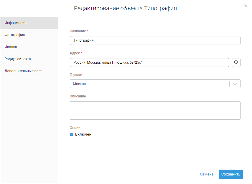 2. Отредактируйте информацию об объекте.