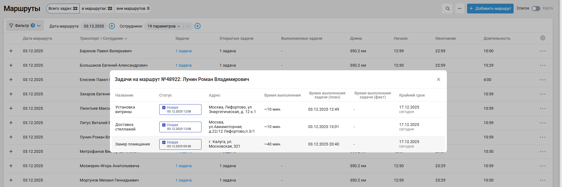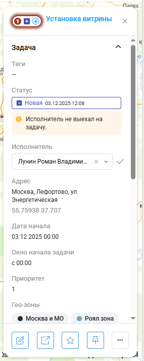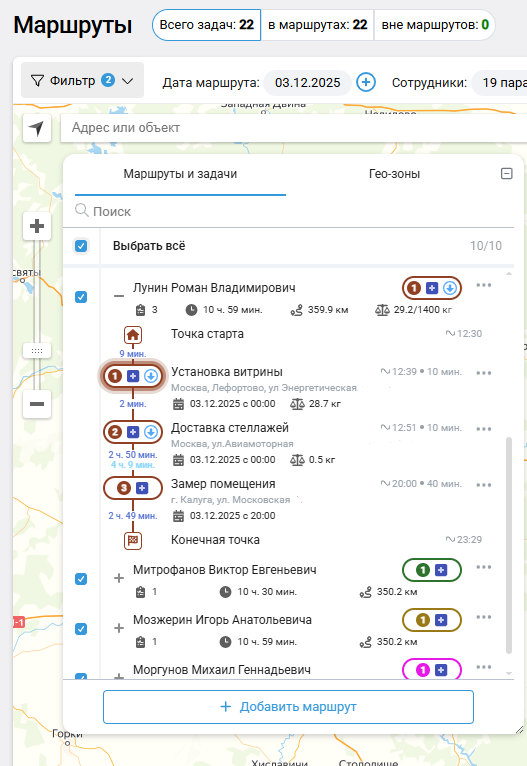 4. Чтобы посмотреть детали по задаче, нажмите на нее в раскрытом маршруте или на карте.