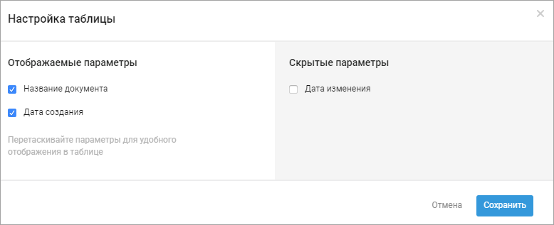 3. Чтобы изменить порядок параметров в таблице, в колонке Отображаемые параметры перетаскивайте параметры вверх или вниз.