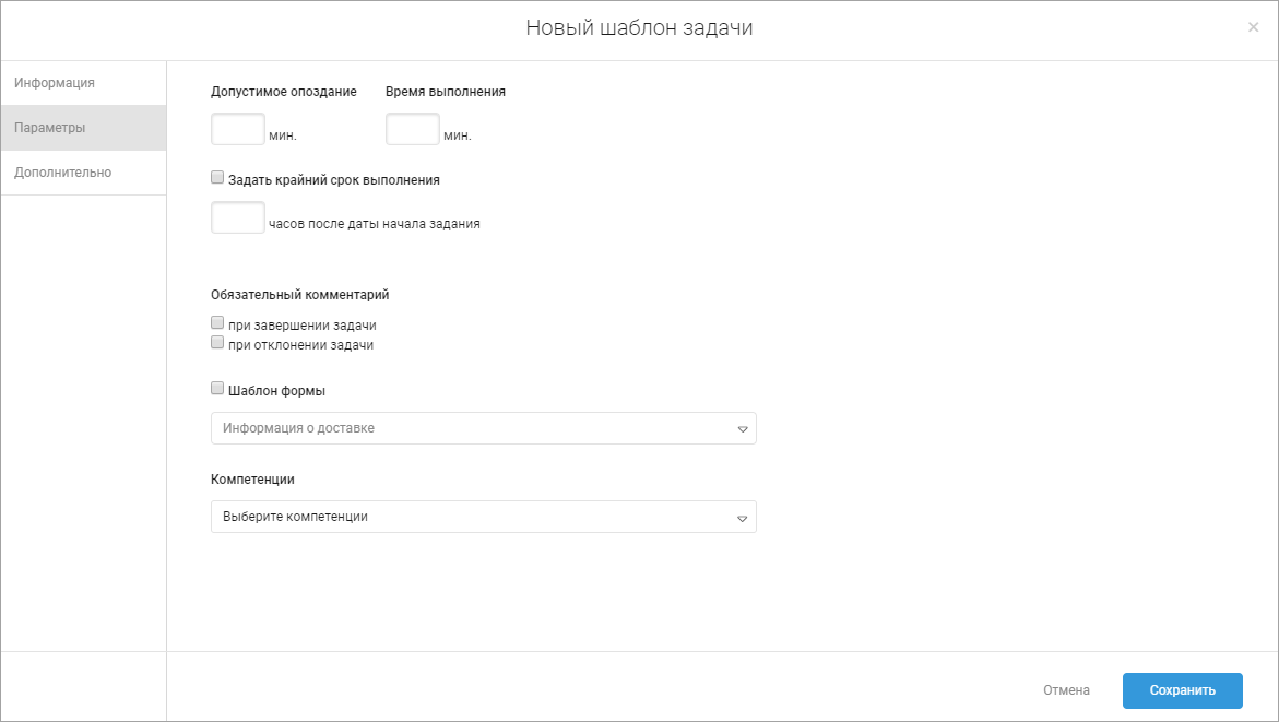 4. Заполните поля на вкладке Дополнительно. Вкладка Дополнительно доступна, если у вас создан шаблон дополнительных полей задач и он выбран как шаблон по умолчанию в настройках.