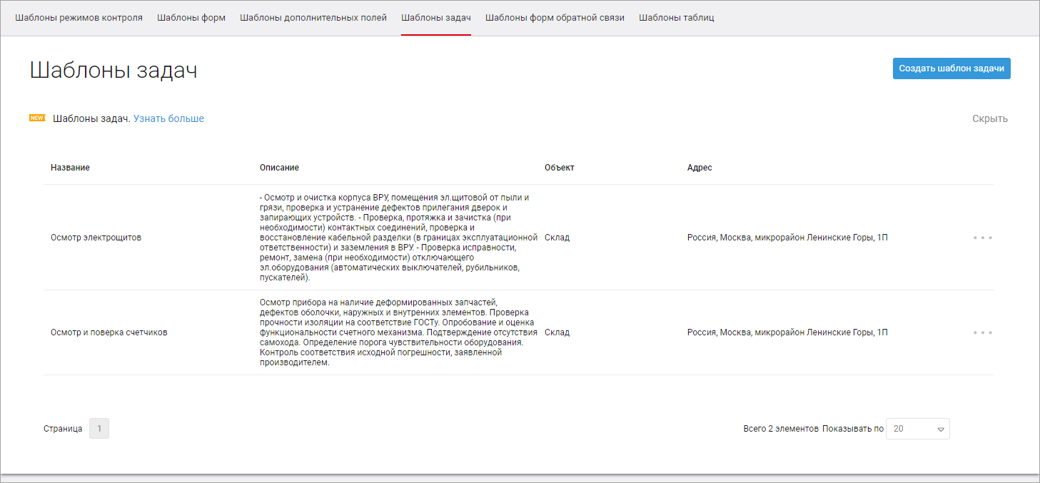 1. В правом верхнем углу нажмите кнопку Создать шаблон задачи.